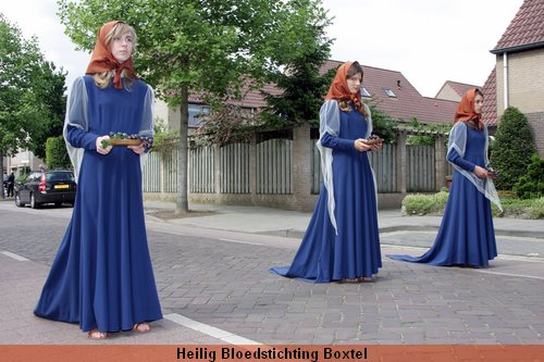 Maria wordt hier geƫerd door haar te omgeven met de symbolen van de Eucharistie: brood (korenaren) en wijn (druiventrossen). Het Lievevrouwenbeeld dat wordt meegedragen staat thans in de Sint Petrusbasiliek. Het werd eeuwenlang bewaard in het Vrouwengasthuis van Magdalena van der Stappen, gelegen aan de Markt