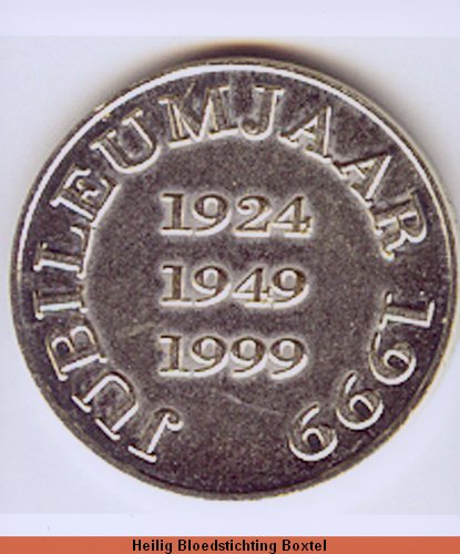 Medaille geslagen ter herinnering aan de viering van het feit dat de Heilig Bloeddoek 75 jaar terug is in Boxtel. Tevens herdenkt deze medaille het 50-jarig bestaan van de huidige processie.